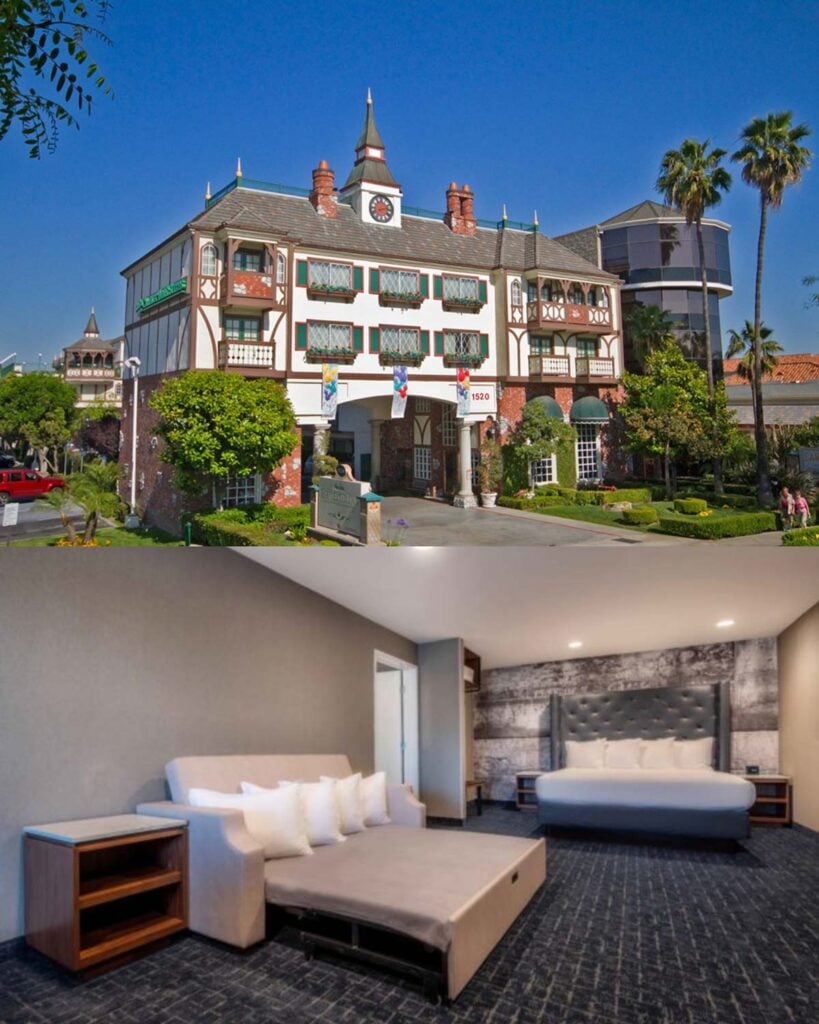 This hotel is located directly across the street from the main Harbor Avenue entrance to the Disneyland resort making it pretty comparable with the walking distance of an on-property hotel. We did a two-room family suite with a king bed, sofa bed, and two doubles. It was fantastic and the proximity to the park was unbeatable.