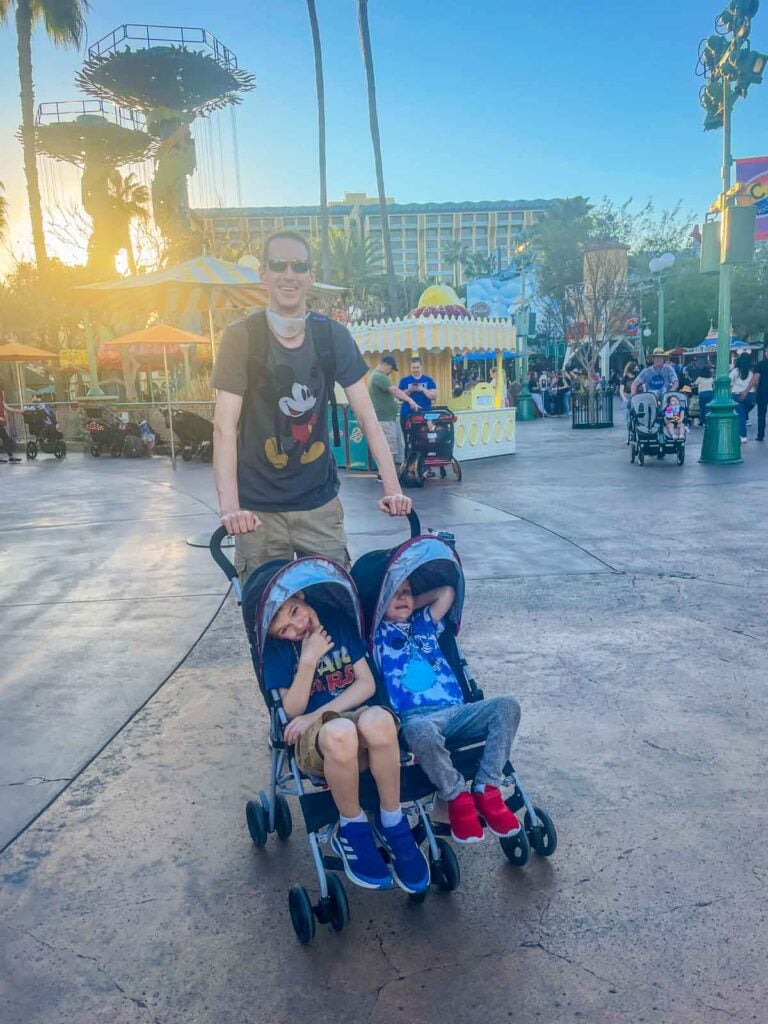 Even when my kids were 5, 7, and 8 – we brought a double stroller to Disneyland and thank goodness we did. It was a simple umbrella style double stroller (the same style we brought when they were toddlers). Do not bring your fancy stroller to Disneyland but bring something.