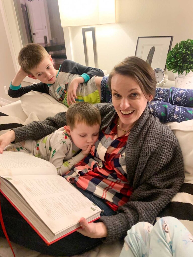 If big kids are grumpy, the family feels disjointed, or moods are blue – there’s nothing like grabbing a snack, a few cozy blankets, and piling on the couch together with a book. Don’t underestimate the transformative power of time spent discovering stories together.