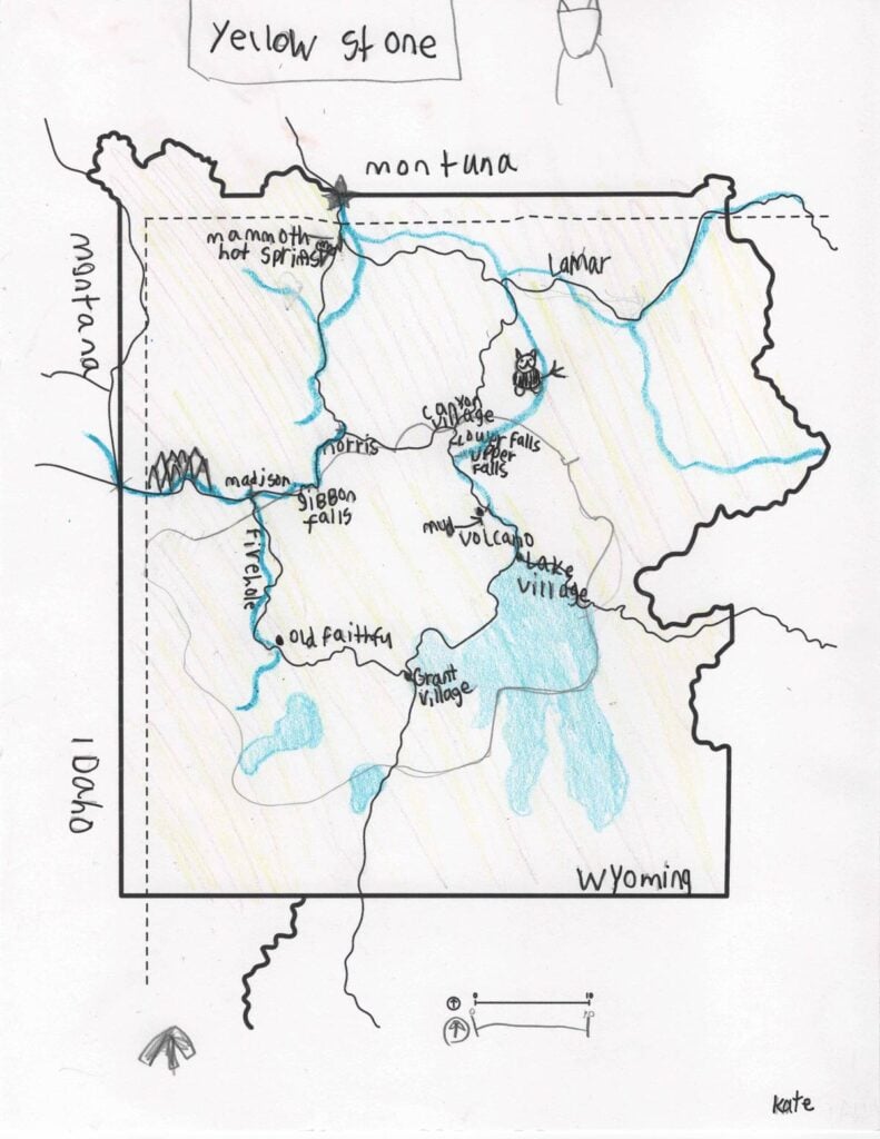 This was an ongoing activity as we learned about Yellowstone. We started with blank maps of Yellowstone that I drew. We then added to our maps different landmarks, landforms, and locations we knew we would be stopping at as we learned about them.