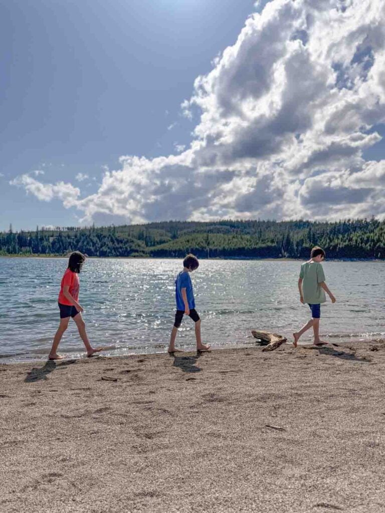 - Drove to Duck Lake Trailhead at the West Thumb Geyser Basin – super easy 1 mile out and back to get to a secluded beach for more play