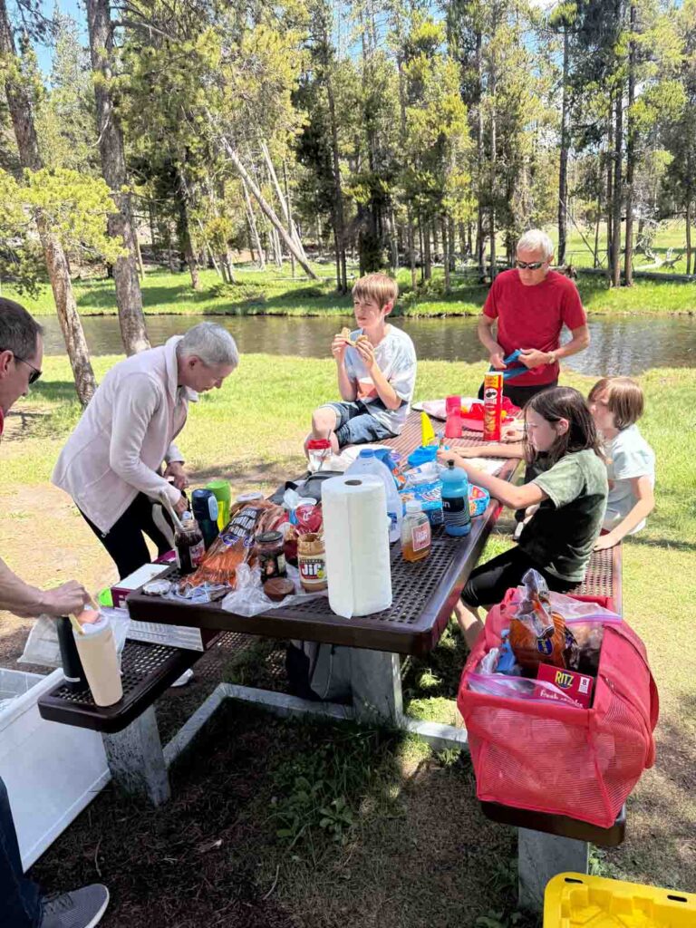 We took a road trip to drive from Seattle to Yellowstone so we were able to drive in with coolers. We ate out of our coolers for breakfast and lunch, but did a restaurant meal for dinners.