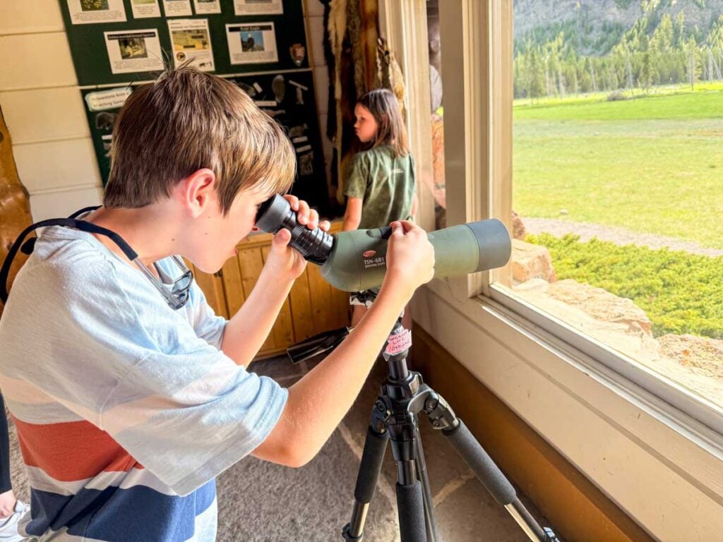 The Young Scientist backpack is available ONLY at the main visitor’s center at Old Faithful. Your family can check this out for 3 hours. In the backpack is another fantastic workbook, a thermo gun to check temperatures of hot springs (wish we had one all trip), a stop watch to time eruptions, rock samples, books, and games.