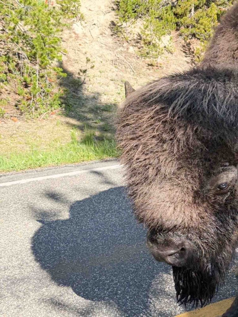 Both photos taken from my car window – the bison got so close, but we stayed safe in our vehicle and never approached them.